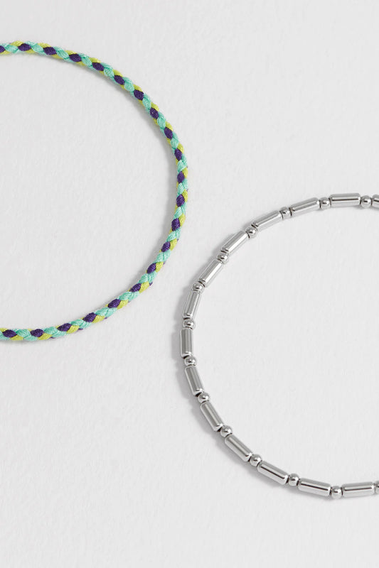 Green Cord and Beaded Stretch Duo Bracelet