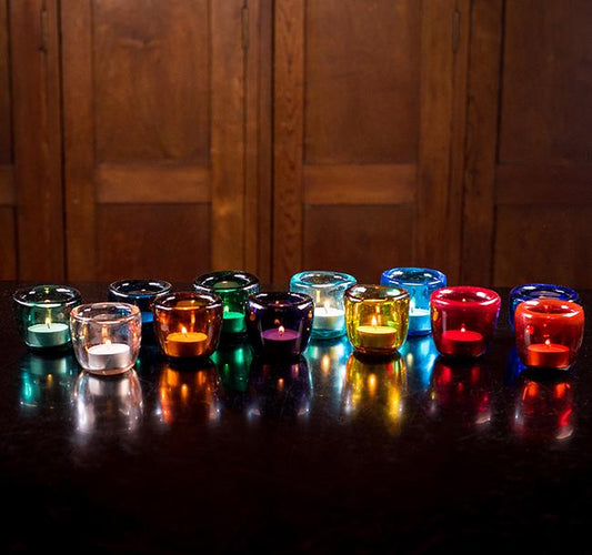 Handmade Rainbow Tealight in Recycled Glass - Aconite Violet
