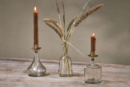 Chara Hammered Bottle - Clear Glass and Antique Brass