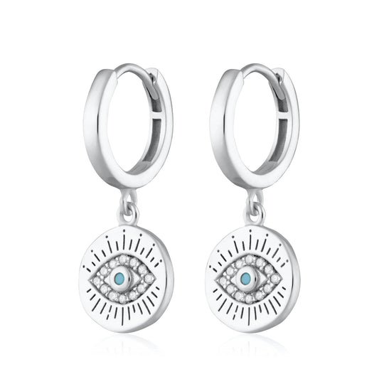 Evil Eye Charm Hoop Earrings: 18k Gold Plated Sterling Silver