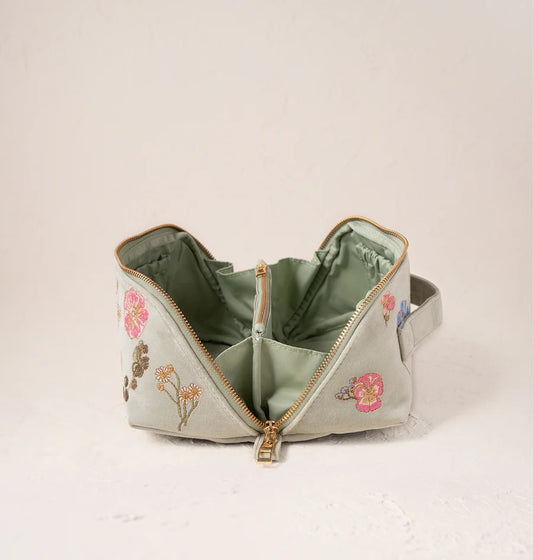 Pressed Flowers Open Flat Makeup Bag - Sage