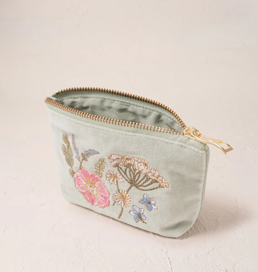 Wild Garden Velvet Coin Purse - Emerald