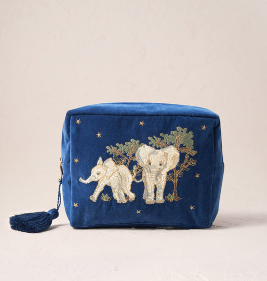Baby Elephant Conservation Wash Bag - Navy Velvet