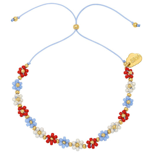Red and Blue Daisy Chain Bracelet - Gold Plated