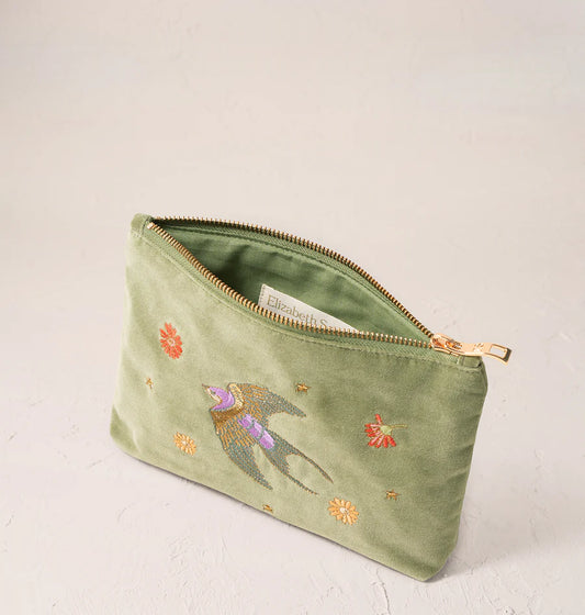 Pressed Flowers Mother of the Bride Sage Velvet Everyday Pouch