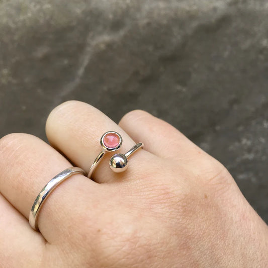 Adjustable Sterling Silver and Pink Gemstone Ring (Birthstone for October)
