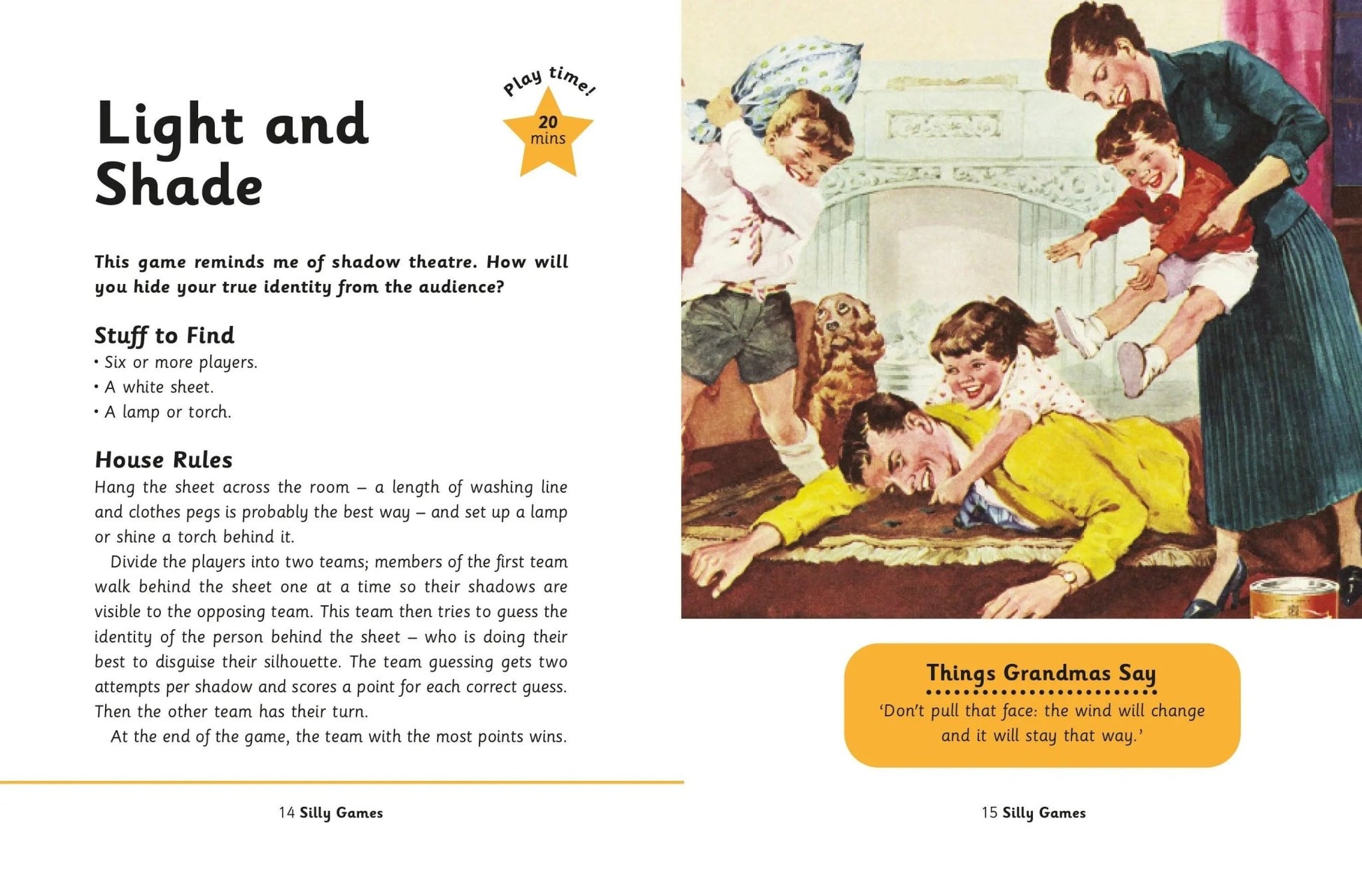 New, classic and beloved (but often forgotten) family games perfect for keeping children away from their screens or tearing the house down on rainy days - and great for visiting grandparents as well. Create your own family traditions with Charades, Sardines, Are You There, Moriarty, Kangaroo Racing, Sprouts, Fish Flap, and many more. Over 60 classic games ordered alphabetically for quick and easy reference, and suitable for all ages.