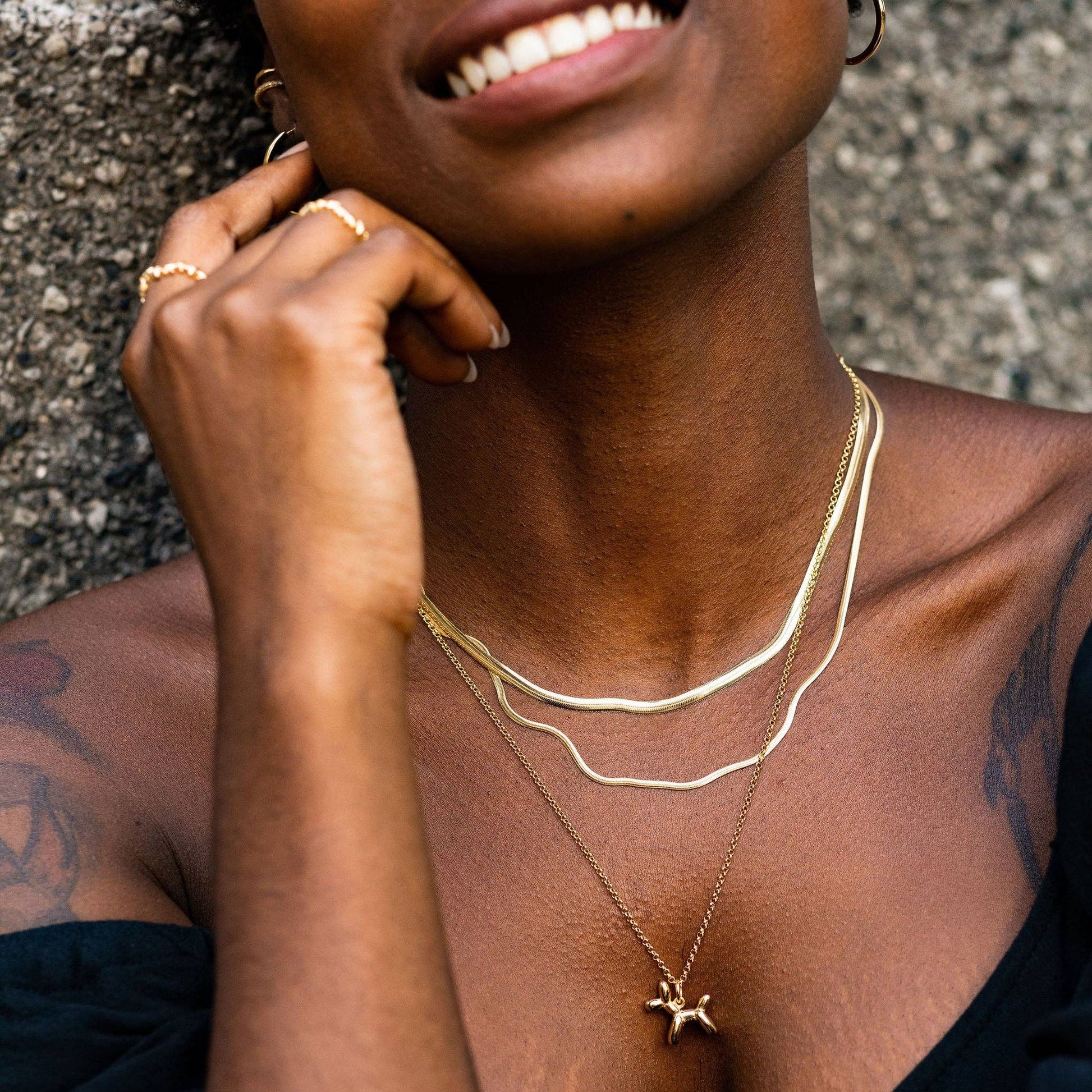 Whimsical balloon dog pendant perfect for customers who love playful, conversation-starting jewellery. The sleek organic finish and premium sterling silver construction create a sophisticated take on fun design. This unique gift piece offers retailers an easy style win with strong social media potential and broad giftability. The dual chain length options provide flexibility for different styling preferences and customer needs.