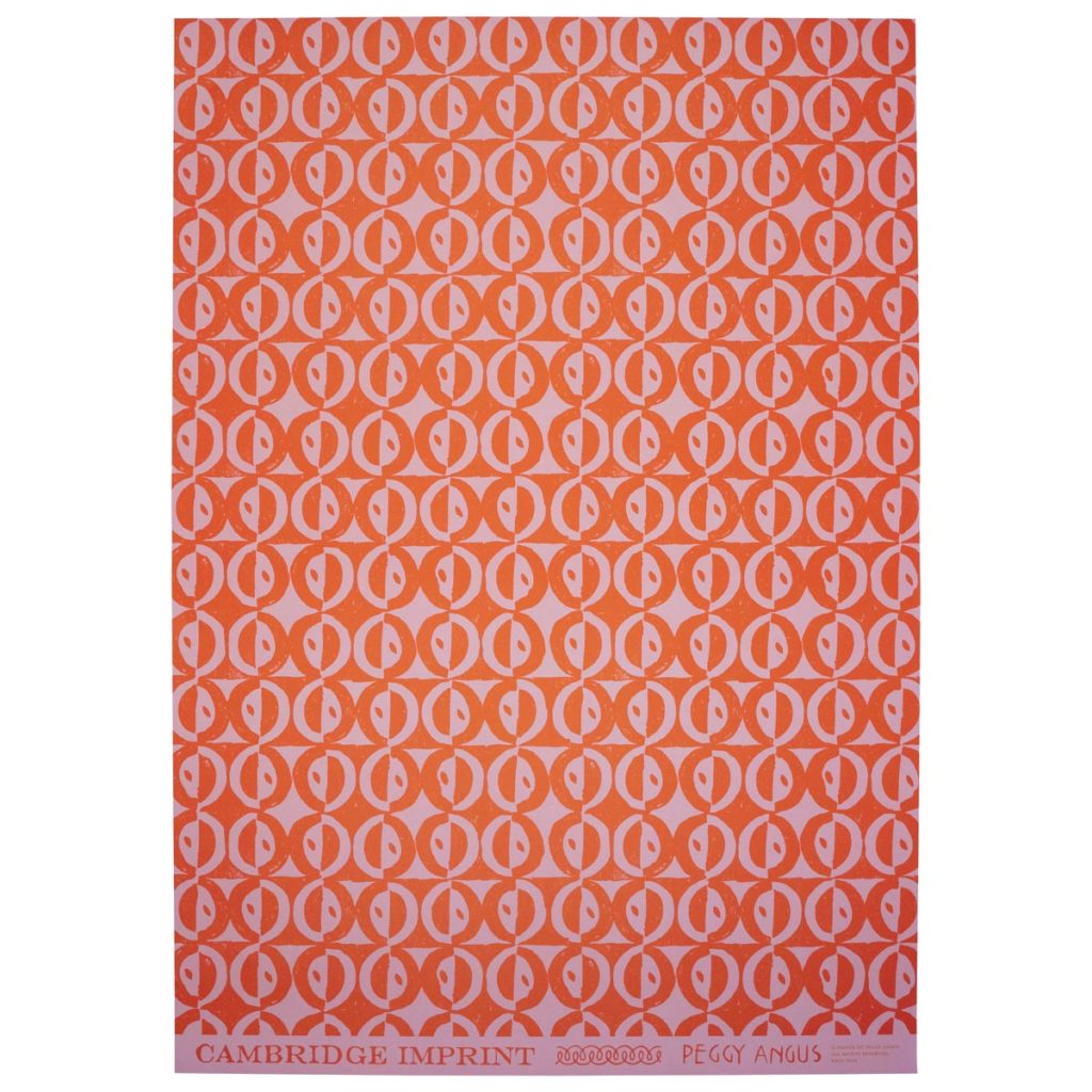 Circles and Dots is one of eight papers published by Cambridge Imprint in 2021 that recreate the patterns of the great designer, printer and educator Peggy Angus. Peggy Angus was a friend of Eric Ravilious, Tirzah Garwood, Edward Bawden and many other key figures in British art, illustration and design, who were active in the middle years of the twentieth century. She is particularly well known for her patterns which were used to decorate tiles and and to create the beautiful wallpapers that she block-printed herself by hand. To produce this pattern, a new print was taken from Angus’s original linocut. We then reproduced the pattern lithographically in matte colour, using colour ways of the sort she most favoured, and reducing the scale to suit this new medium.