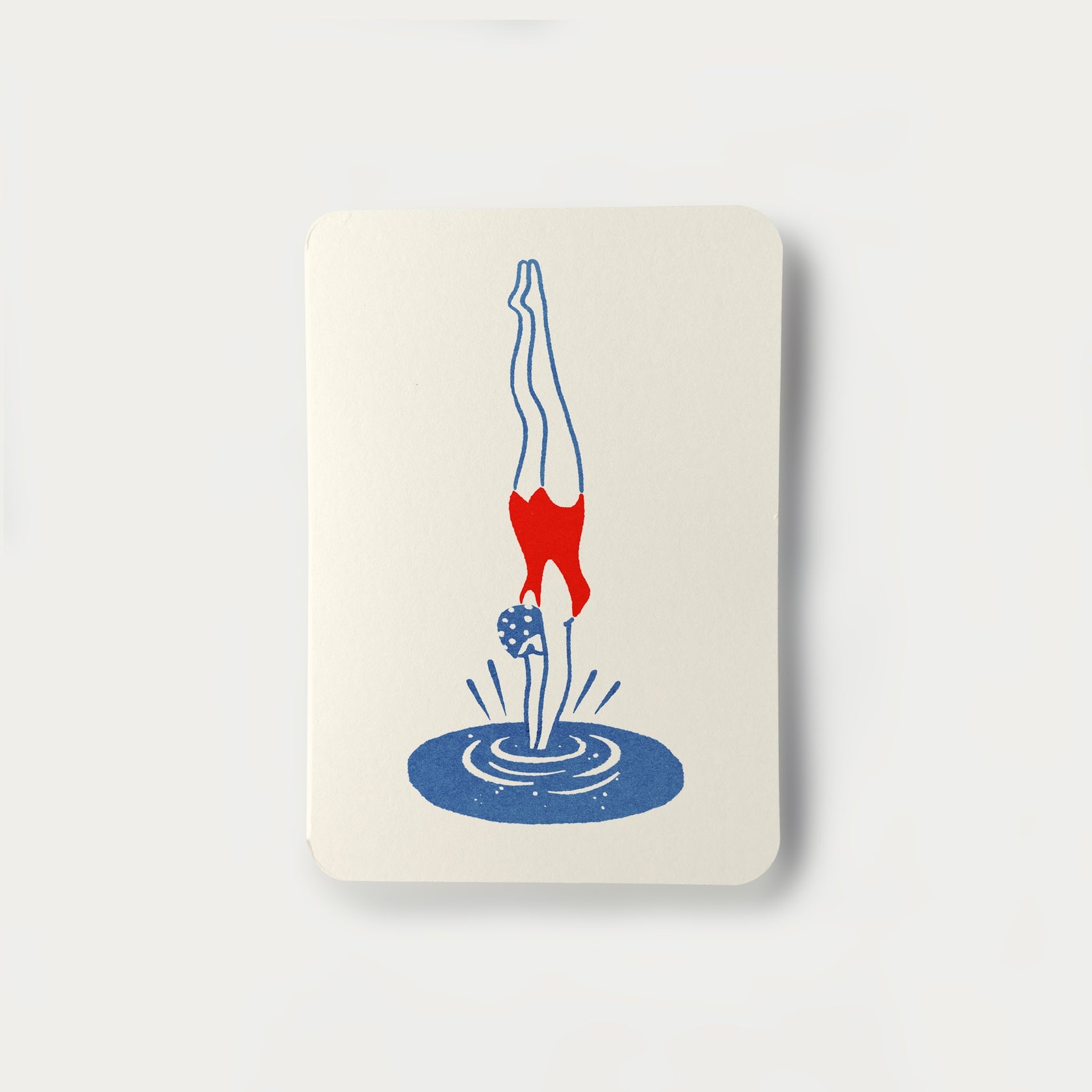 Illustrated greeting card of a swimmer diving into the water.