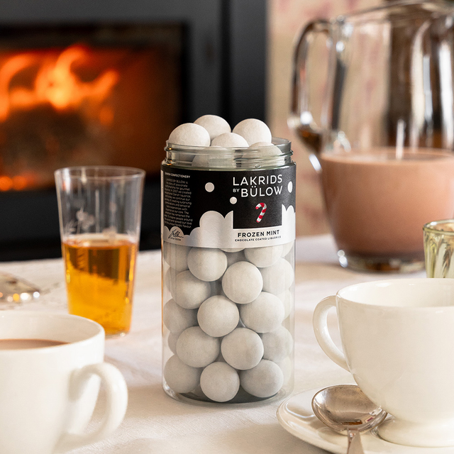 FROZEN MINT will make sure that you get to enjoy a fresh and white winter. Treat yourself to sweet liquorice and soft milk chocolate with a hint of mint. A crispy shell of white sparkling sugar will make you think of white, freshly fallen snow.
