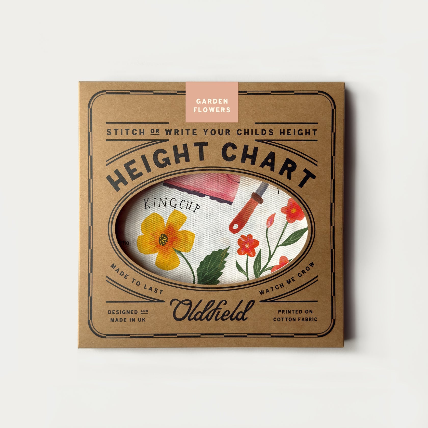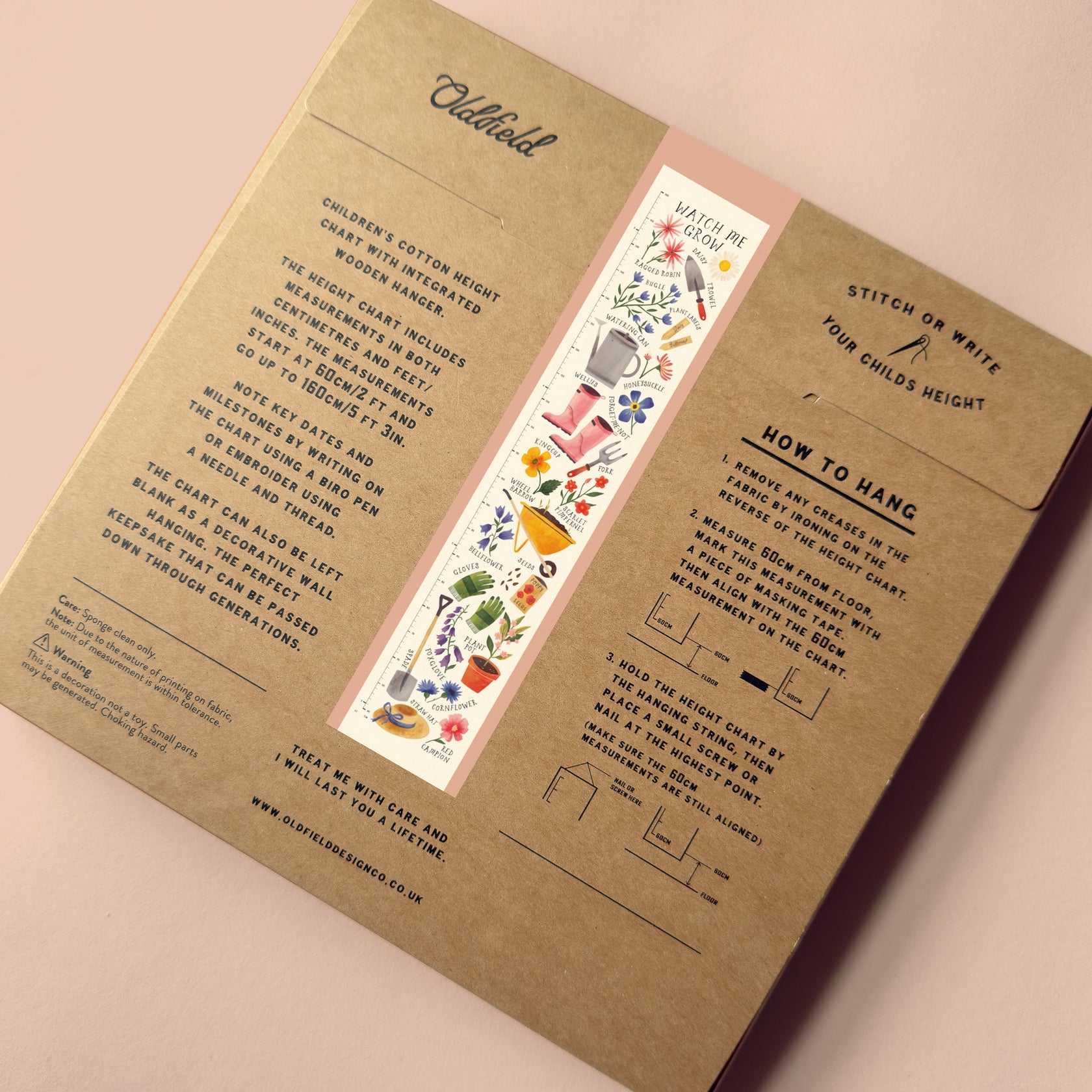 The height chart is folded and presented in a branded brown Kraft gift box.