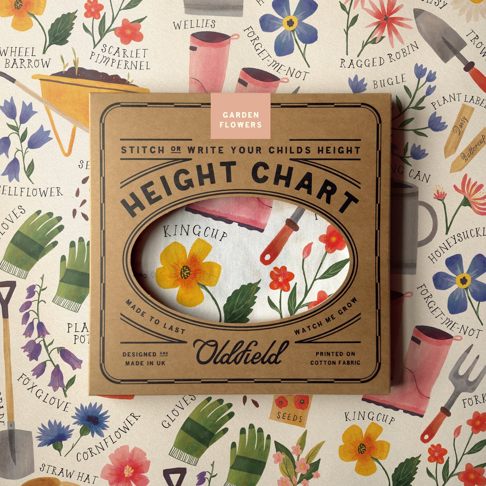 Garden Flowers Height Chart - Children's Cotton Fabric Height Chart with Integrated Hanger