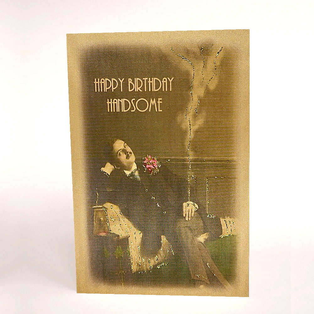 This card reads Happy Birthday Handsome on the front and is blank inside for you own message.