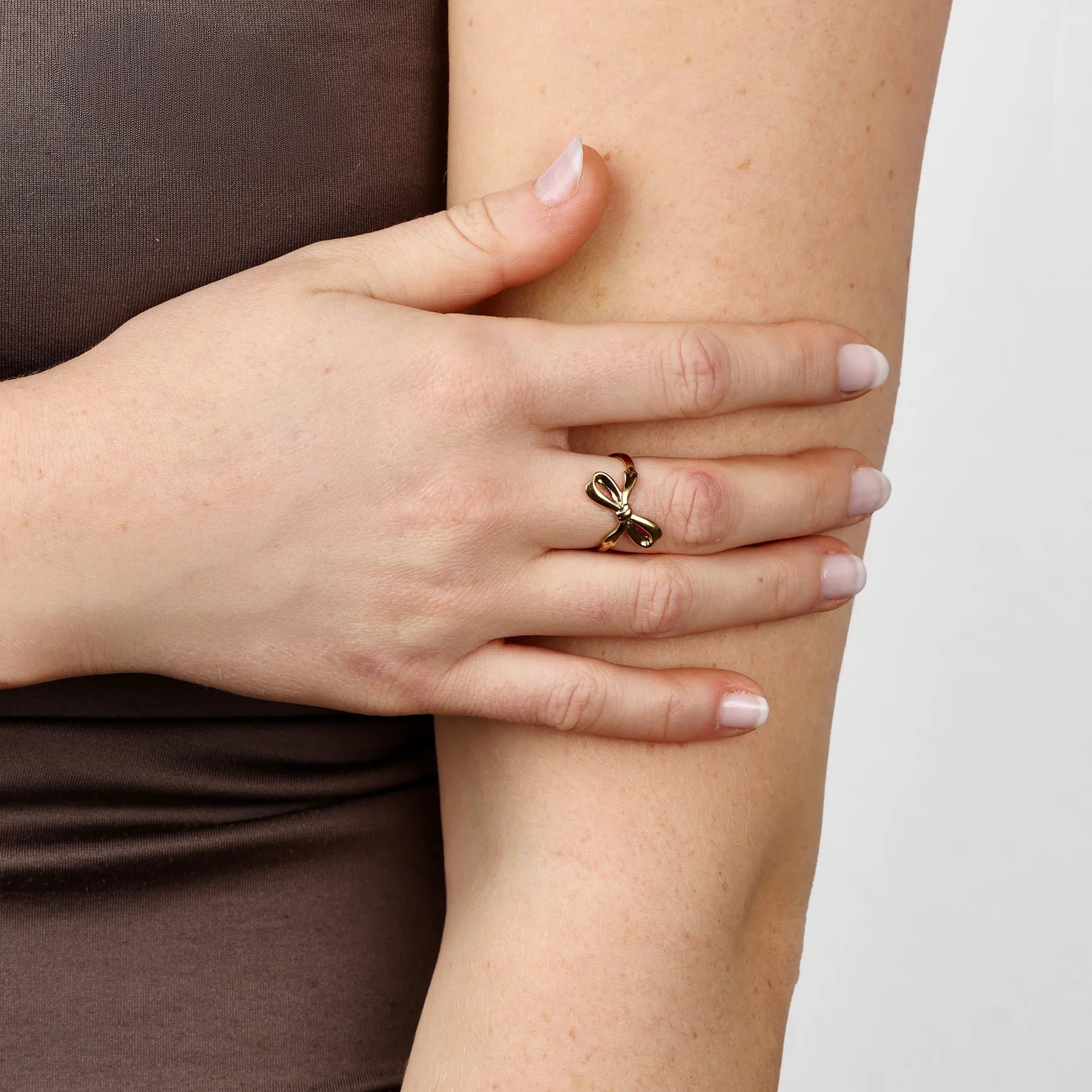 A feminine bow-shaped ring crafted in waterproof stainless steel.