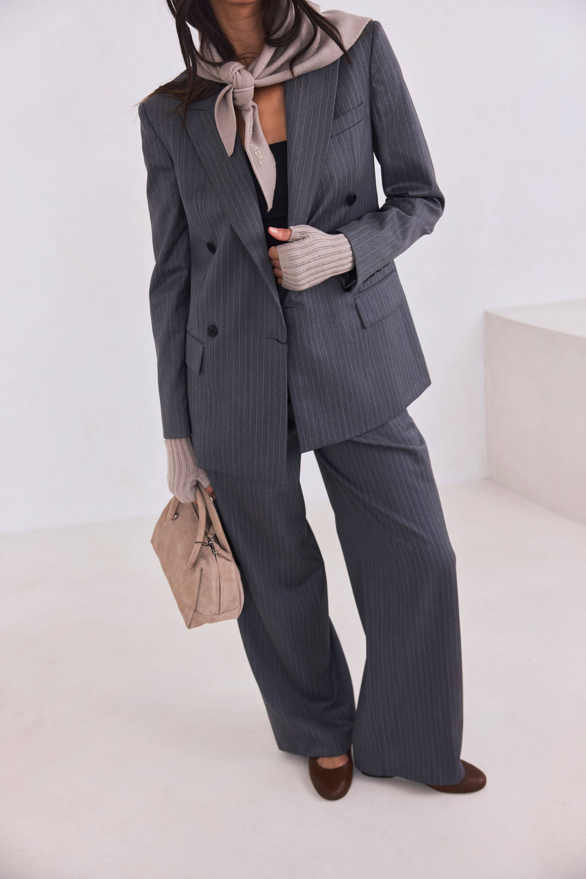 Merino Wool Fingerless Gloves - Soft Taupe - AW25