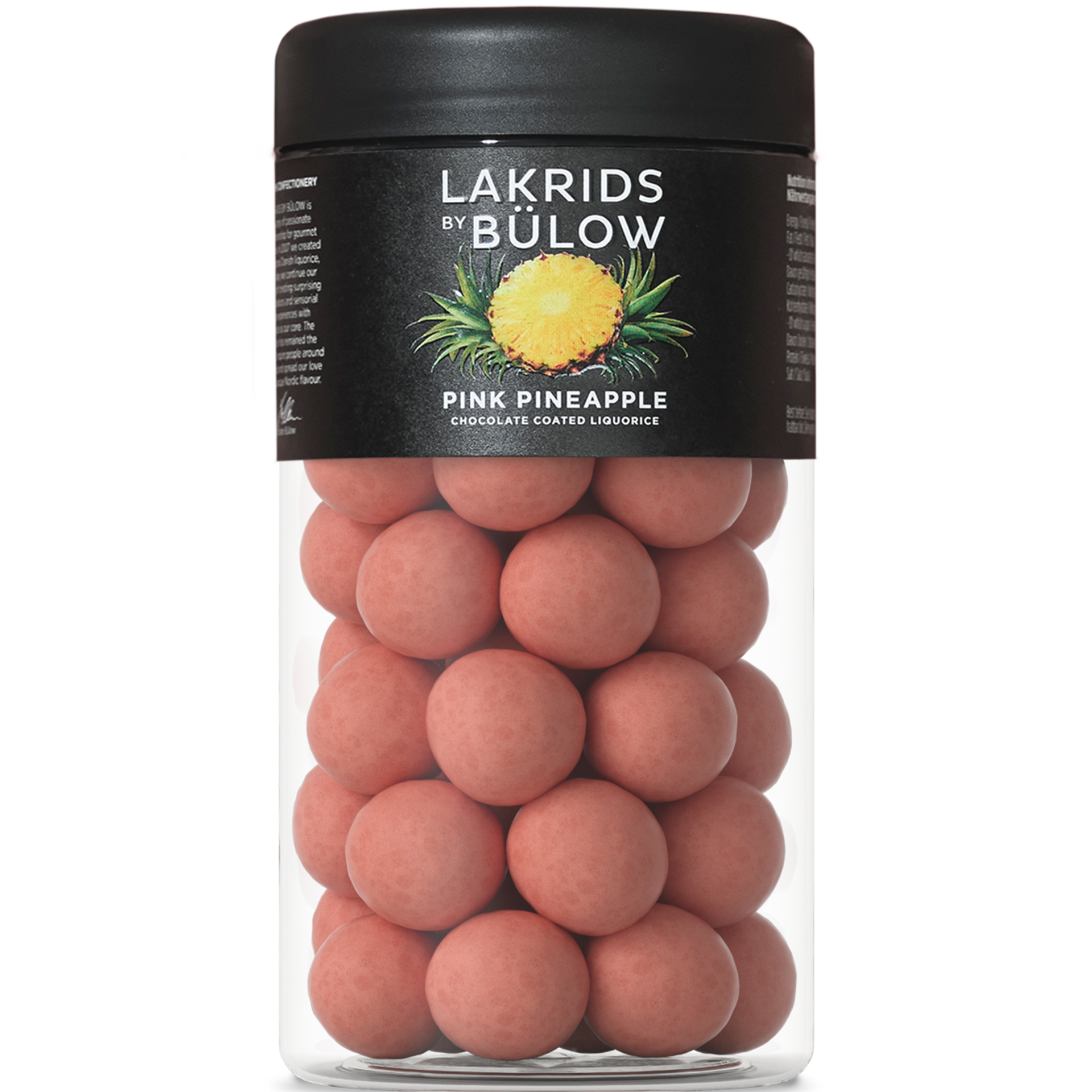 For some people pineapple is an unsurpassed fruit that hardly can get any better. Or can it? For PINK PINEAPPLE we have swirled sweet soft liquorice with fresh, exotic notes from pineapples and creamy white chocolate all enclosed by a delicate, pink sugar shell.
