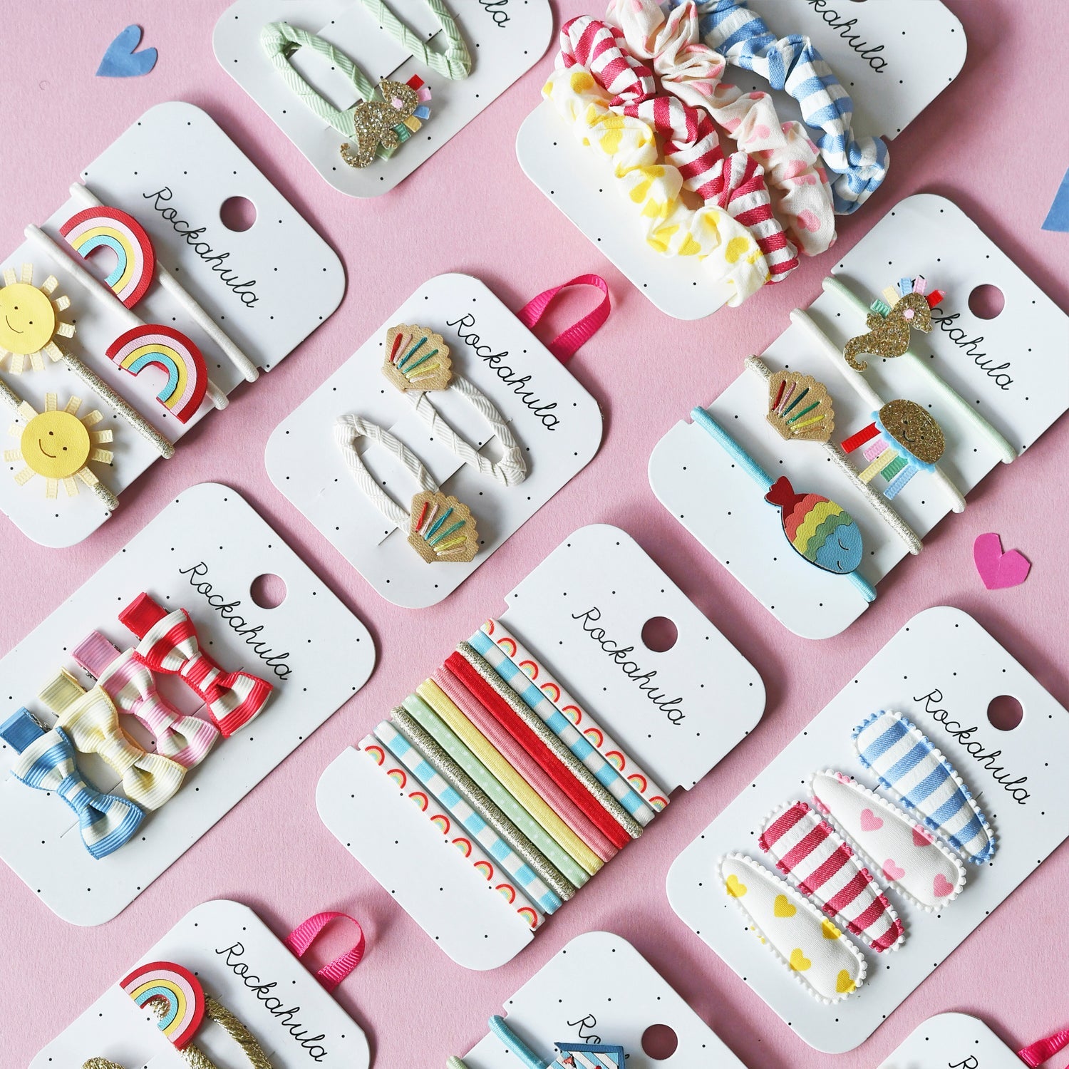 These two PU seashells are perfect for adding a little mermaid magic to your day! With rainbow thread detailing and pale gold PU, each shell is secured to a pale pink grosgrain ribbon wrapped clip.