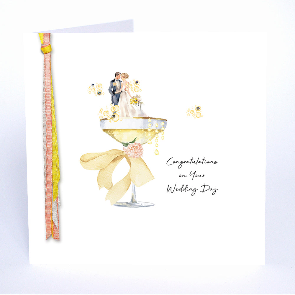A beautiful card of love, celebration and magic! Delicate watercolour illustrations in vibrant colours, lovingly embellished with genuine crystals and hand-tied satin ribbons.