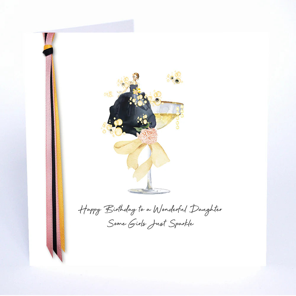 A beautiful card of love, celebration and magic! Delicate watercolour illustrations in vibrant colours, lovingly embellished with genuine crystals and hand-tied satin ribbons.