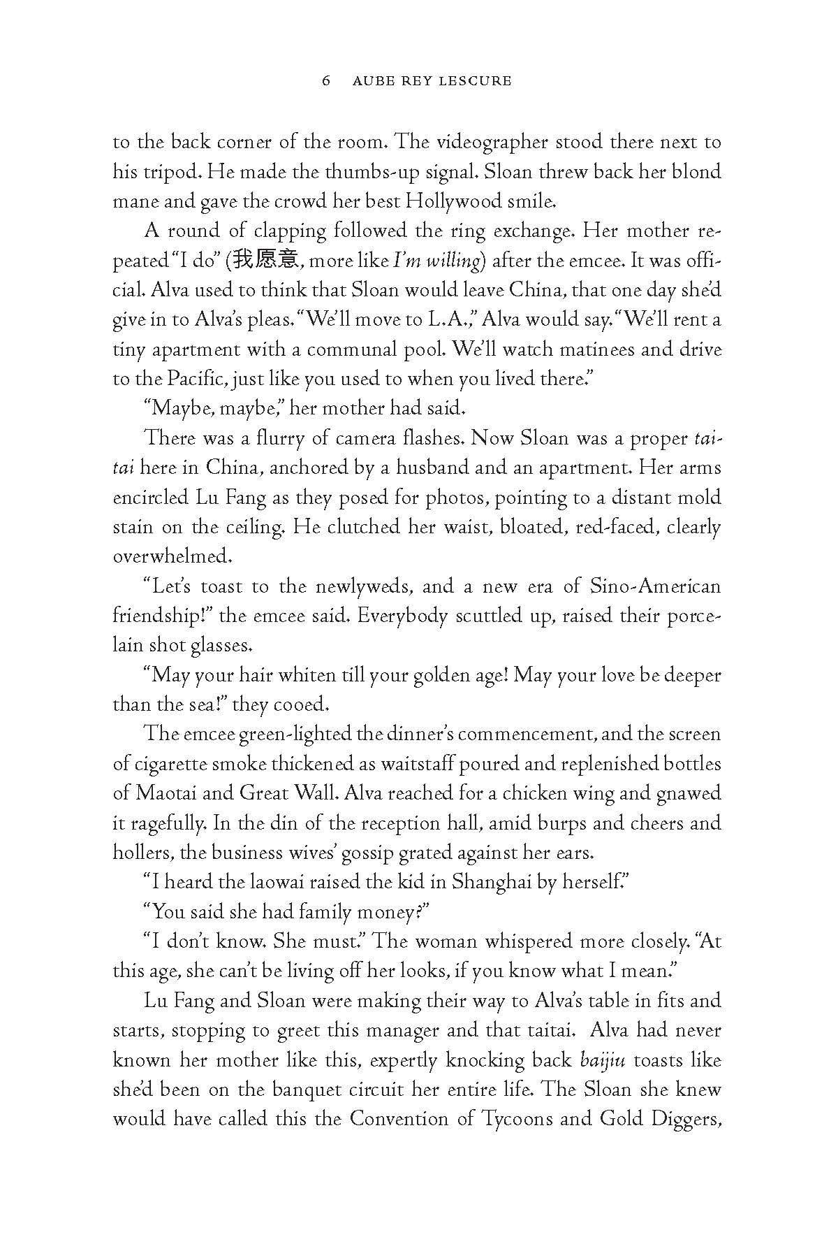 Shanghai, 2007: feeling betrayed by her American mother’s engagement to their rich landlord Lu Fang, fourteen-year-old Alva begins plotting her escape. But the exclusive American School – a potential ticket out – is not what she imagined. Qingdao, 1985: newlywed Lu Fang works as a lowly shipping clerk. Though he aspires to a bright future, he is one of many casualties of harsh political reforms. Then China opens up to foreigners and capital, and Lu Fang meets a woman who makes him question what he should settle for. *Shortlisted for the Women's Prize for Fiction 2024*