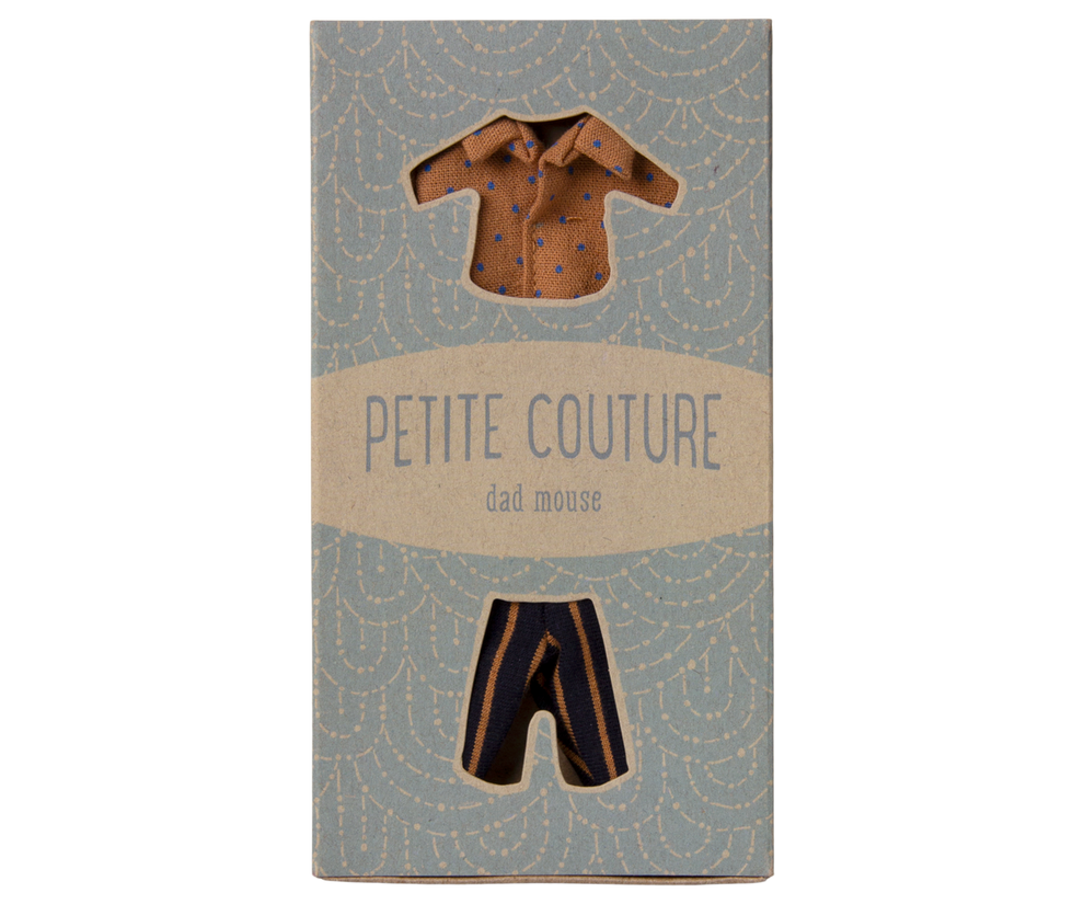 If you need a new set of clothes for your mouse this set will be a good choice. This set consists of a dotted shirt and a pair of striped pants.