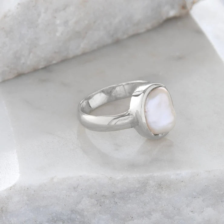 A Sterling Silver Ring featuring a Freshwater Baroque Pearl.