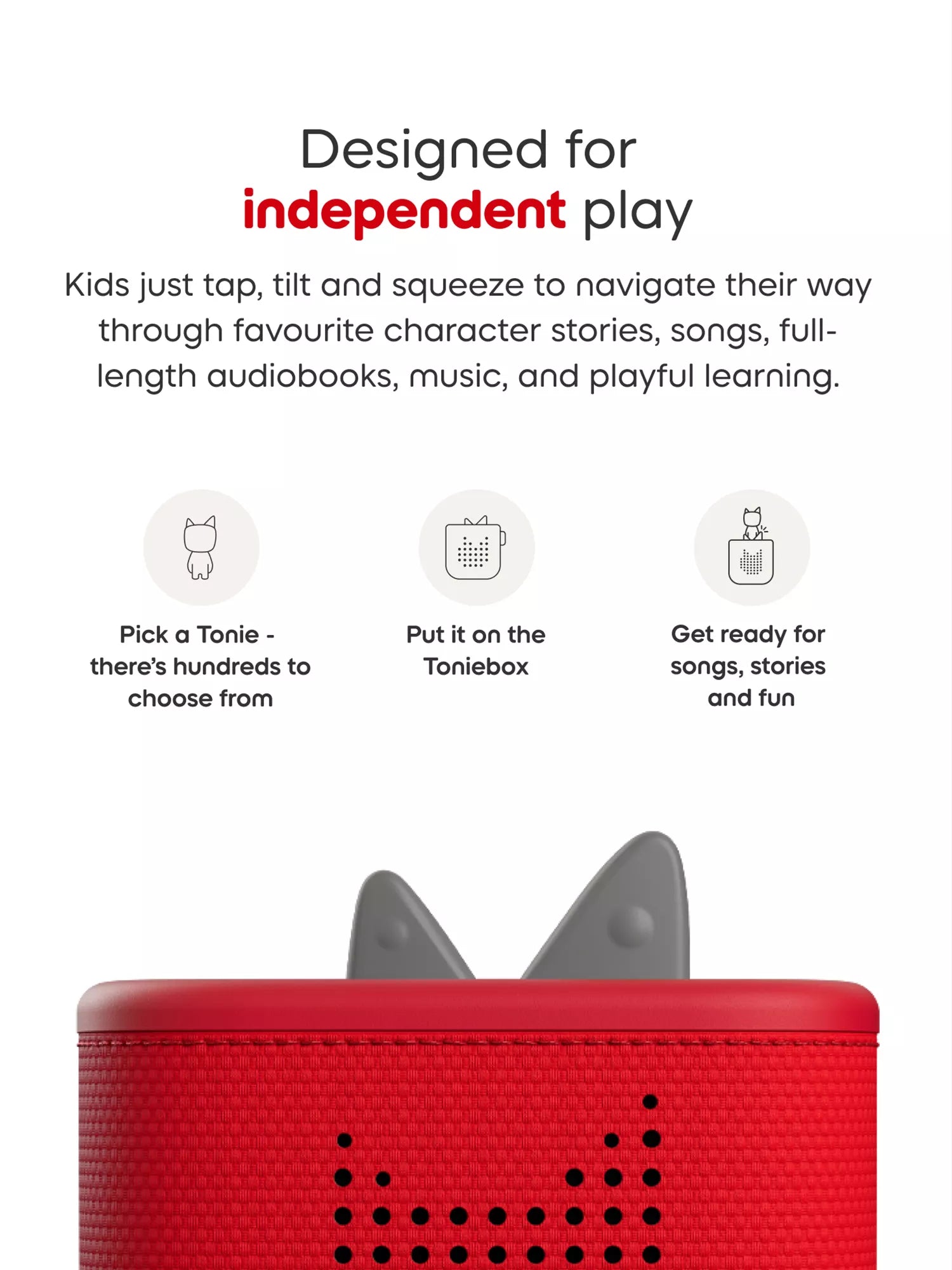 - Complete with a creative Tonie, to store up to 90 mins of your own songs + stories