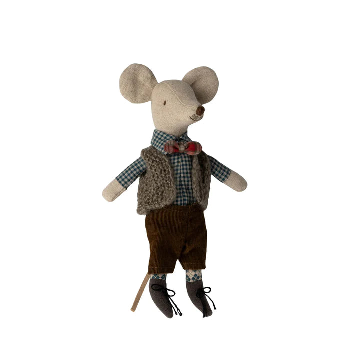 Dress up grandpa mouse in this classic set of loose clothes. It includes a pair of pants, a bowtie and a soft knitted vest.