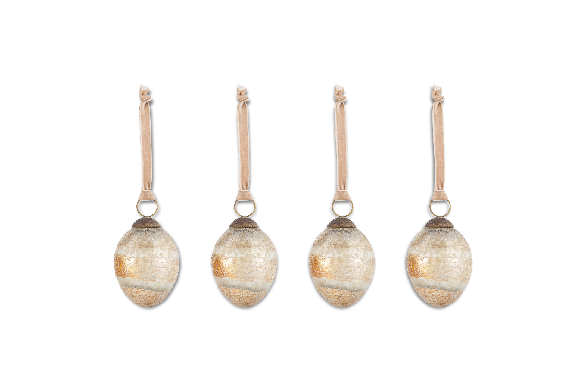 These elegantly shaped Viti Gold Baubles in pared-back tones of antique gold and silver have a wonderfully irregular striped patterning and are a beautiful addition to a naturally festive room decor. Organically shaped, they bring substantial structure to a tree scheme and create a beautiful look as part of a table setting or added to a seasonal garland. The understated antique bronze clasp finishes the sophisticated look.