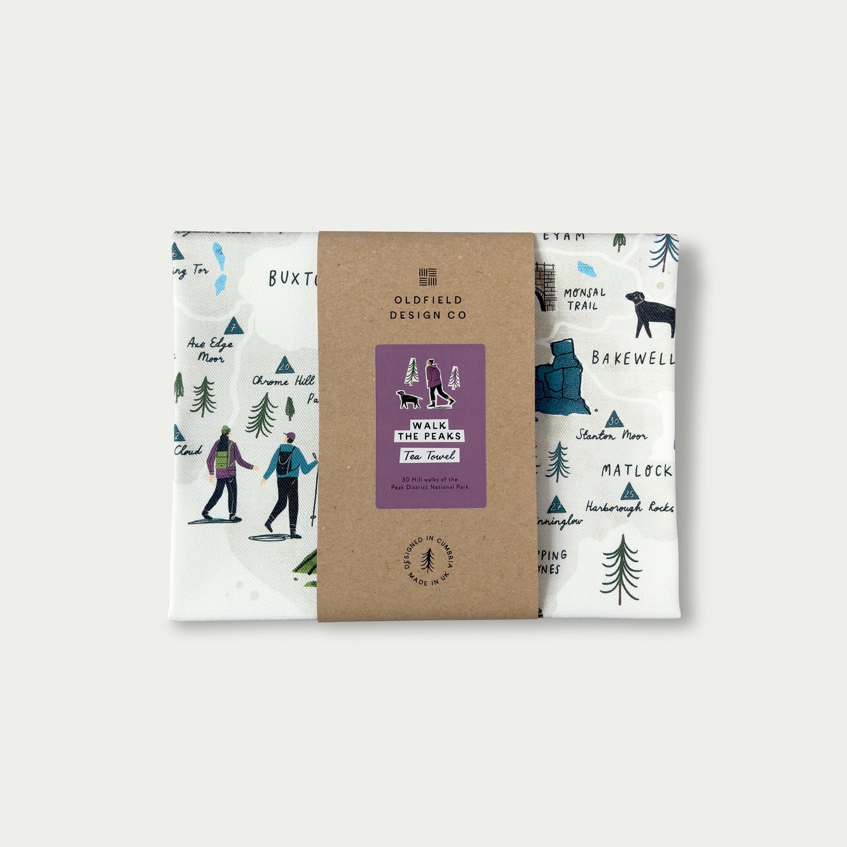 Peak District Tea Towel - 30 Hill Walks of the Peak District, Derbyshire.