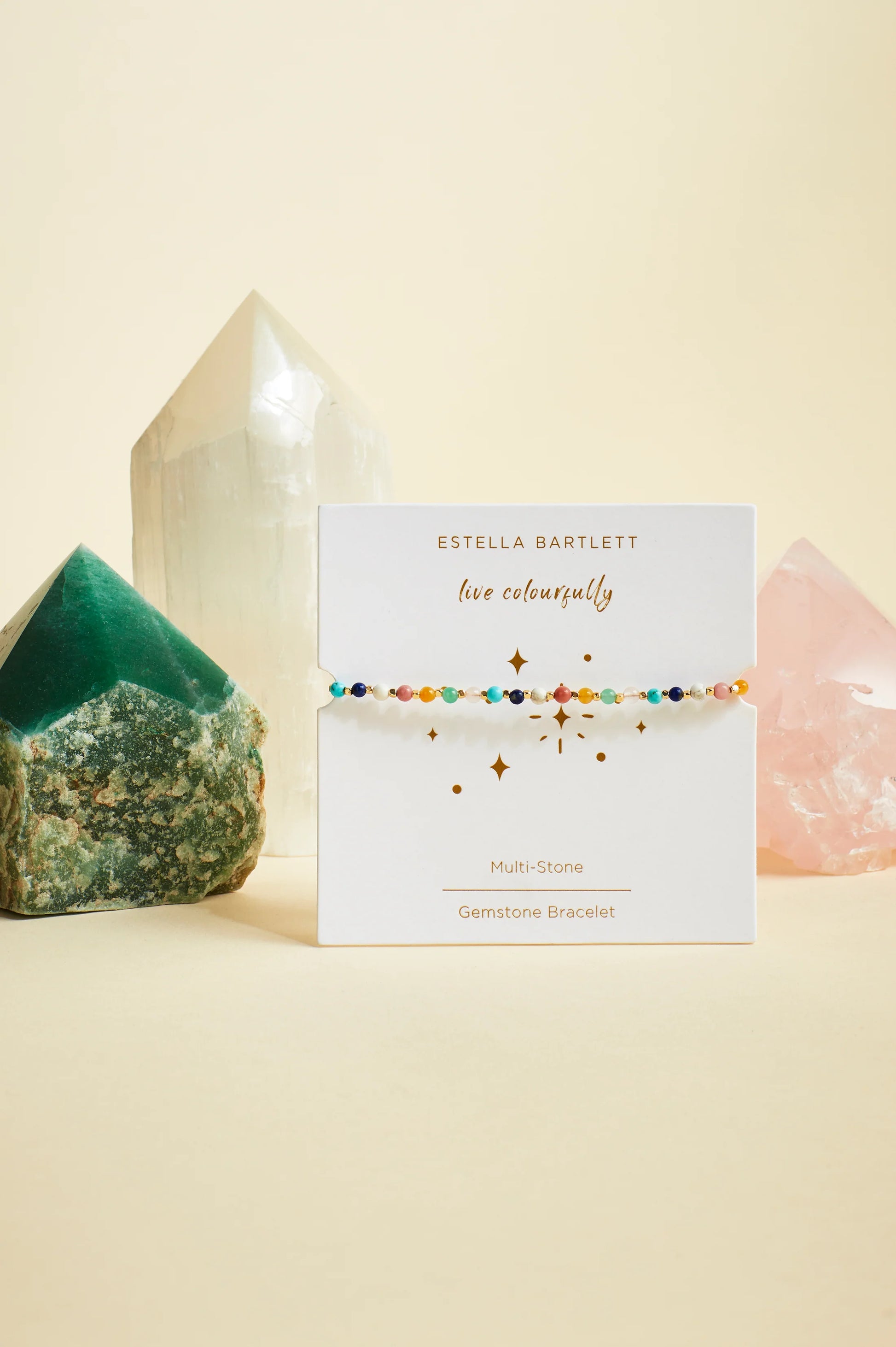 A bestselling adjustable bracelet in a brand new colourway using natural gemstones that add a meaningful pop of colour to your look. Combining a diverse mix of gemstones is said to create a colourful array of energies. From creativity to wisdom, every stone emanates its own unique property.