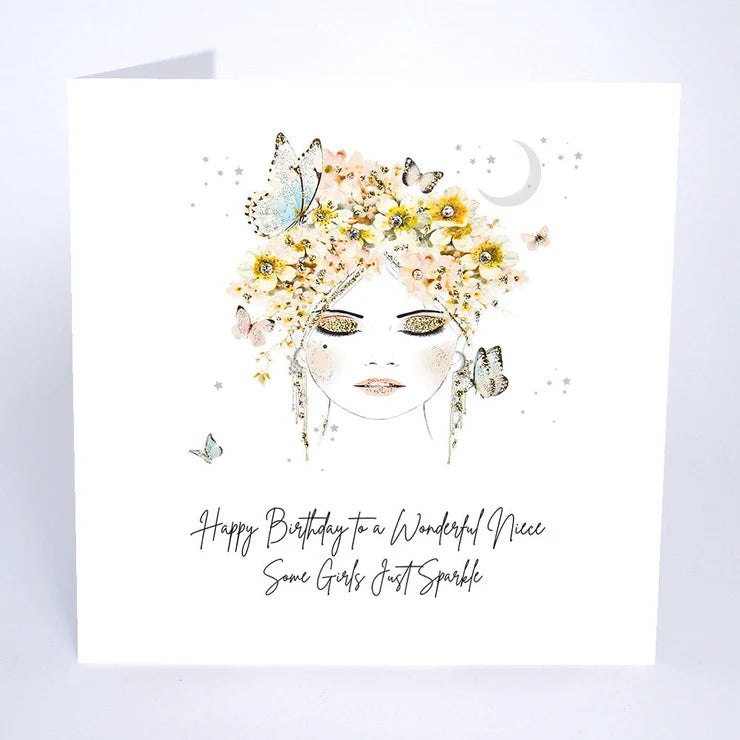 Nature springs to life with butterflies and blossom; cherry, peach, lilac and mimosa ~ it’s pure flower power! Hand painted in peachy hues and brilliant iridescent coloured glitters. Each design is finished with genuine crystals.
